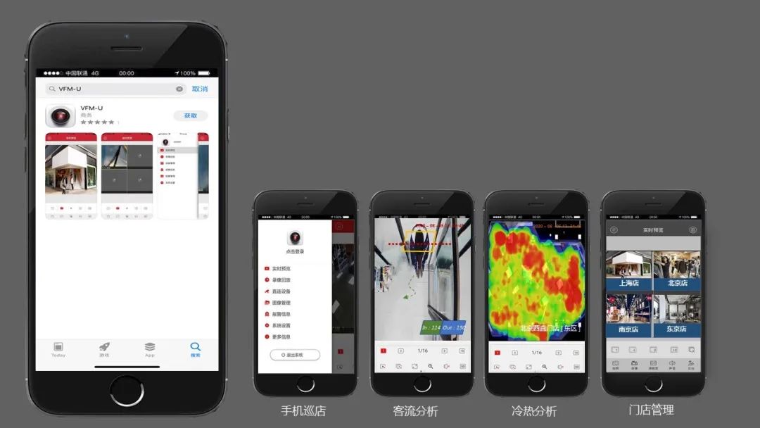VFM 視頻監(jiān)控中心是leyu.樂魚安防免費視頻監(jiān)控平臺APG-AS300 和 定制視頻監(jiān)控平臺VFS-B3000 中的移動端軟件增強模塊,該系統(tǒng)可與leyu.樂魚安防品牌攝像機實現(xiàn)快速視頻接入,實現(xiàn)手機移動端訪問門店進行視頻查看、全國分店集中管理,還可快速與leyu.樂魚安防AI功能型攝像機實現(xiàn)快速對接,實現(xiàn)隨地隨地查看門店進出客流量等視頻疊加數(shù)據(jù),實時分析監(jiān)測數(shù)據(jù),可用于實時動態(tài)跟蹤進出門店的顧客消費行為與偏愛,輔助了解實體門店內(nèi)的消費行為, 輔助店鋪精準營銷及管理運營策略優(yōu)化。